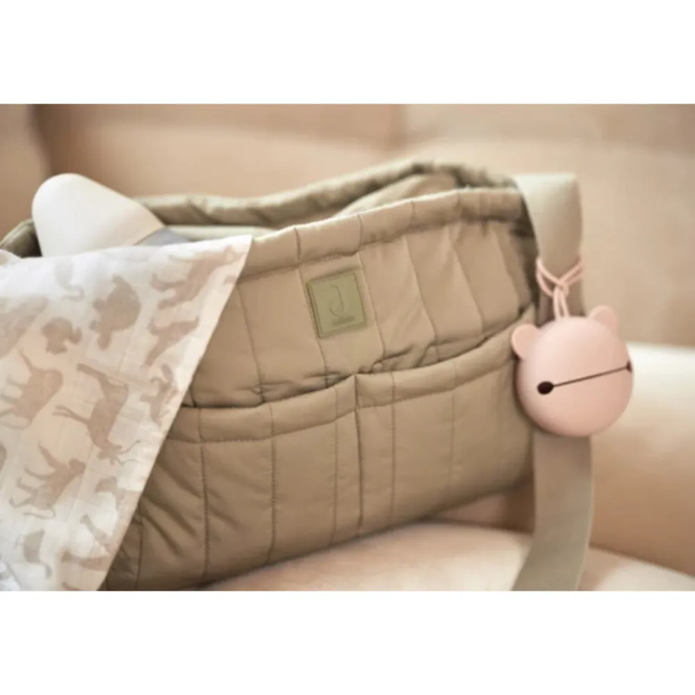 Onze schattige siliconen speenhouder, in de vorm van een berenhoofdje, is de perfecte oplossing om de speen van je kleintje hygiënisch en binnen handbereik te houden. Gemaakt van 100% veilig siliconenmateriaal, biedt deze speenhouder zowel stijl als functionaliteit. Je kunt hem eenvoudig aan de tas bevestigen, zodat de speen altijd binnen handbereik is wanneer je kleintje hem nodig heeft. Het ontwerp zorgt ervoor dat de speen volledig hygiënisch wordt opgeborgen, klaar voor gebruik. Kies uit de trendy kleuren Biscuit, Olive Green en Wild Rose om de speenhouder aan te passen aan jouw stijl. Met onze siliconen berenhoofdje speenhouder, hoef je je geen zorgen meer te maken over rondslingerende spenen en kun je zowel praktisch als modieus zijn terwijl je onderweg bent.