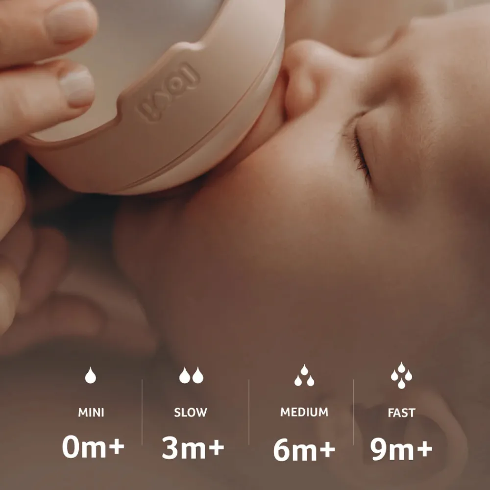 Het zachte oppervlak van de speen imiteert de huid en de textuur van de moederborst. Dit beschermt de band tussen jou en je baby, en zorgt voor een natuurlijk drinkgevoel.