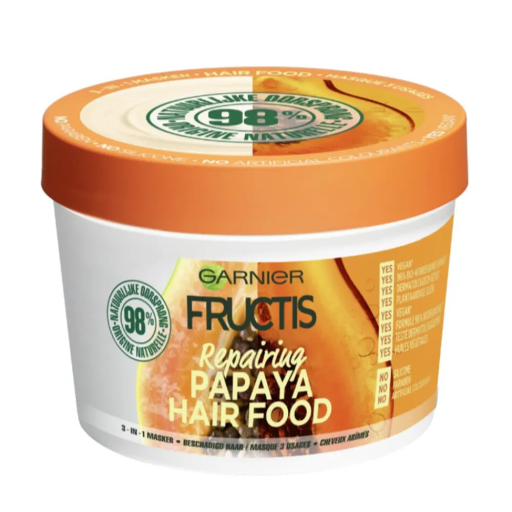 Super Fruits! Super Hair! Een herstellend 3-in-1 haarmasker met papaya voor beschadigd haar.