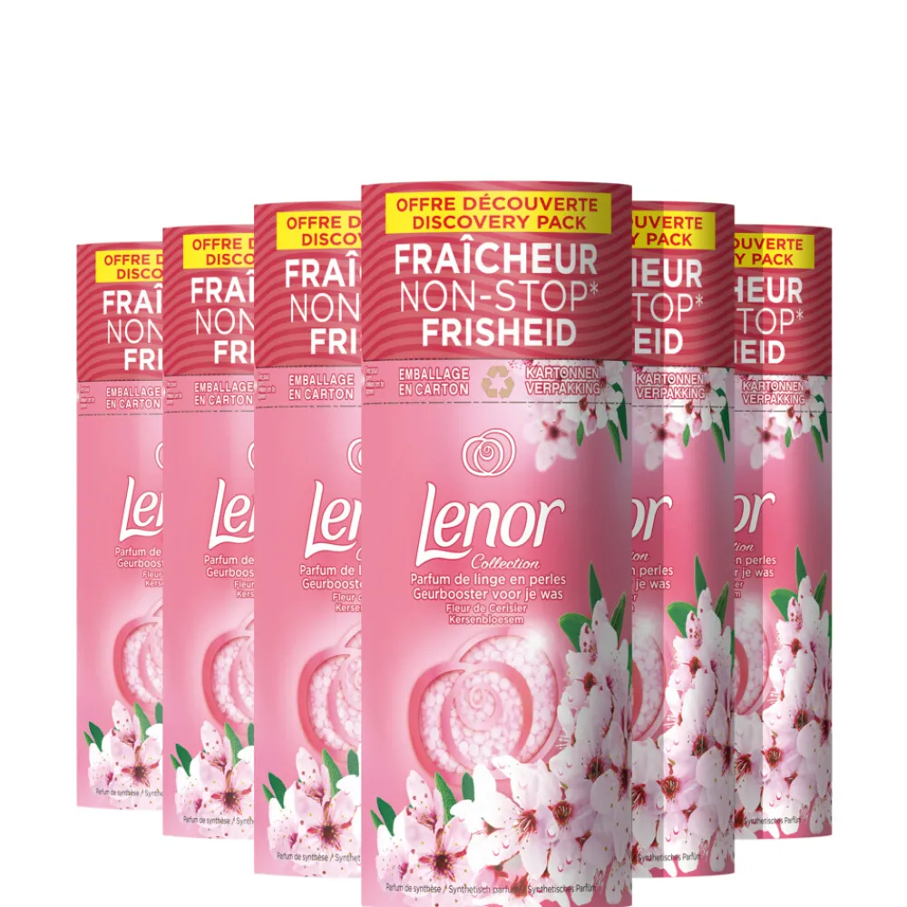 Ontdek de geurbooster voor je was van Lenor voor tot 12 weken langdurige frisheid in de kledingkast. Lenor geeft je kleding een heerlijke kersenbloesemgeur. Ontspan en herstel je balans. Delicate tonen van kersenbloesem creëren een gevoel van vredigheid en sereniteit. Lenor Kersenbloesem geurboosters voor je was zijn gecreëerd om in perfecte harmonie samen te werken met Lenor Kersenbloesem wasverzachter. Ze zijn elk betoverend op zichzelf… en onweerstaanbaar samen. Lenor geurboosters voor je was hebben voortaan een vochtbestendige, recyclebare kartonnen verpakking.