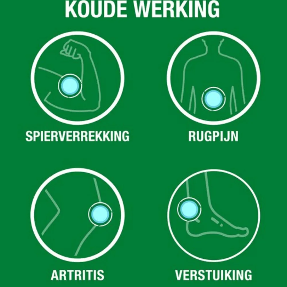 VOORZORGSMAATREGELEN BIJ HET GEBRUIK – Volg altijd de gebruiksaanwijzing. Uitsluitend geschikt voor uitwendig gebruik. Bij per ongeluk inslikken onmiddellijk medische hulp inschakelen of een arts raadplegen. Vermijd contact met ogen of slijmvliezen. Stop met het gebruik van het product en raadpleeg uw arts als de pijn verergert of langer dan 7 dagen aanhoudt, of als de pijn terugkeert na verbetering. Niet aanbrengen op open wonden. Niet gebruiken in combinatie met andere crèmes, balsems, sprays of smeersels. Niet aanbrengen op geïrriteerde huid of bij overmatige irritatie. Niet gebruiken onder een occlusief verband. Niet gebruiken bij allergie voor een ingrediënt in het product. Bewaren op een droge plaats uit de buurt van direct zonlicht. Niet gebruiken met apparaten die warmte genereren. Alle voorvallen die verband houden met het gebruik van dit product moeten onmiddellijk worden gemeld aan Reckitt Benckiser Healthcare en de relevante lokale autoriteiten.