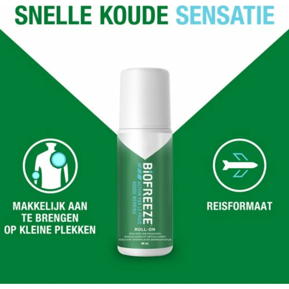 - De formule van biofreeze, die isopropylalcohol bevat, verschaft snel een verkoelend effect bij het aanbrengen op de pijnlijke zone.