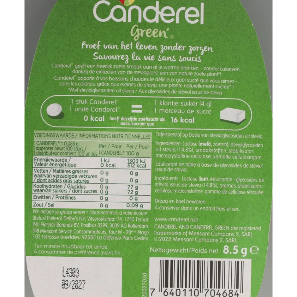 Canderel Green zoetjes is lekker zoet zonder calorieën. Makkelijk mee te nemen voor onderweg en ideaal voor in je koffie en thee.