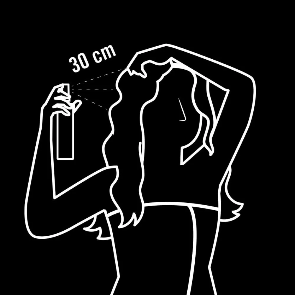 Spray vanaf 30 centimeter afstand op droog haar. Voor het accentueren van individuele lokken spray vanaf de haaraanzet tot punten en breng in model.