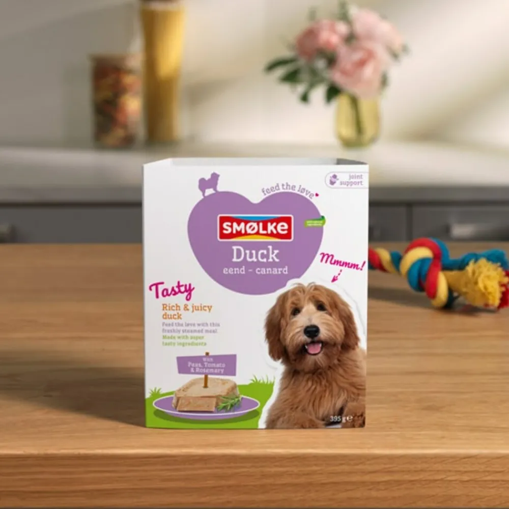 Smolke vers is gemaakt met eend als enige dierlijke eiwitbron en daardoor ook geschikt voor honden met een allergie voor andere dierlijke eiwitten. Chondroïtine, glucosamine en Yucca Schidigera ondersteunen bij het behoud van soepele gewrichten.