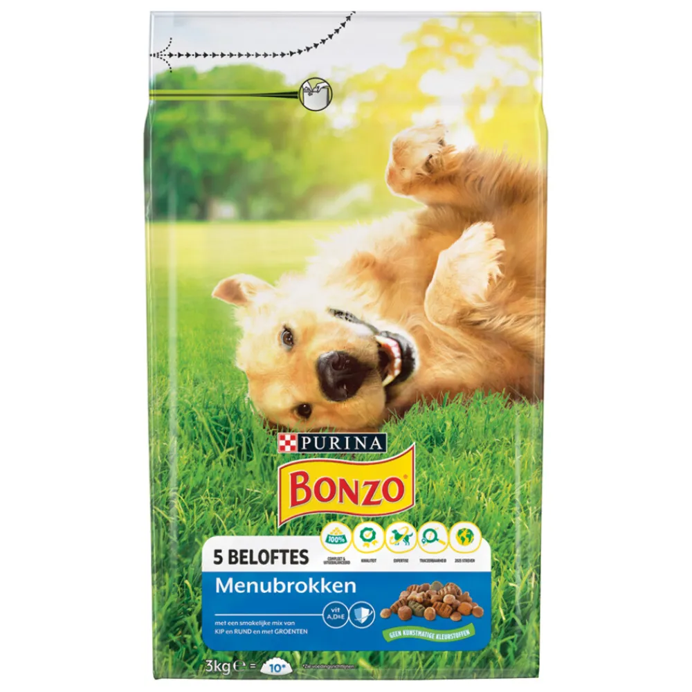 Bonzo Menubrokken is een bron van hoogwaardig eiwitten en alle andere voedingsstoffen die jouw hond nodig heeft om een gelukkig en gezond gezinsleven te leiden.