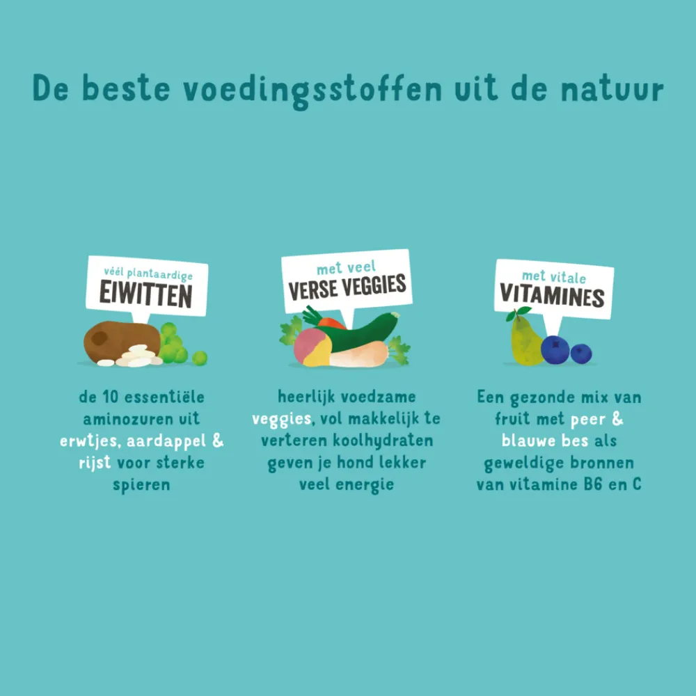 Dit heerlijke, plantaardige recept met wortel en courgette geeft je hond alles wat hij of zij nodig heeft. Rijk aan perfect gebalanceerde eiwitten bevat het alle 10 essentiële aminozuren, afkomstig uit aardappelen, rijst en erwtjes. Dit recept is hypoallergeen en zit boordevol verse groenten en een voedzame mix van fruit, kruiden en peulvruchten.