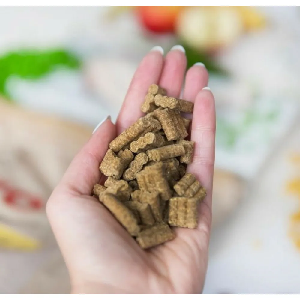 Ontdek Kivo Junior, de verbeterde brokjes voor opgroeiende honden! Boordevol natuurlijke ingrediënten, vitaminen en mineralen, en geschikt als volledige voeding voor honden in ontwikkeling. Deze koudgeperste brokjes behouden optimaal de voedingsstoffen, dankzij het lagere productieproces. Verrijkt met zalmolie, prebiotica, groenten, fruit en kruiden zoals erwt, wortel, banaan, appel, cranberry en peterselie. Het vet/eiwit percentage is hoger, speciaal ontworpen voor opgroeiende honden. Bereid met gedroogde kip, gedroogd rundvlees en gepofte rijst. Geef jouw harige vriend(in) een gezonde start met Kivo Junior!