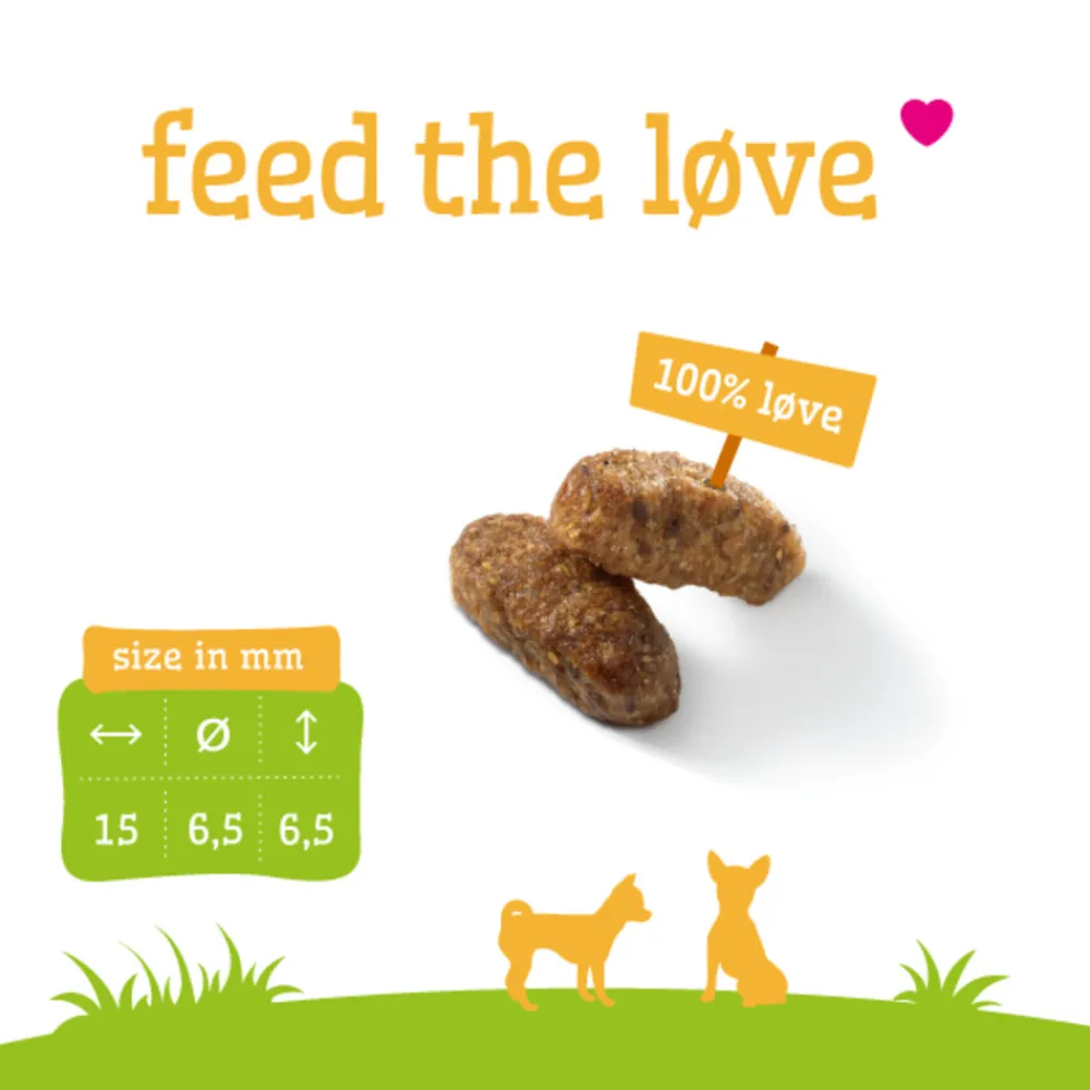 Smølke Adult Mini is een eerlijk product gemaakt met natuurlijke ingrediënten. (Prebiotische) voedingsvezels ondersteunen de werking van het darmstelsel. De biotine en Omega 3- en 6- vetzuren in dit product dragen bij aan een optimale conditie van de huid en vacht en speciale mineralen helpen de vorming van tandplak te beperken. Door Smølke te voeren weet je zeker dat je jouw hond alles geeft wat hij nodig heeft. Zo kun jij je focussen op leuke dingen doen samen met je hond!