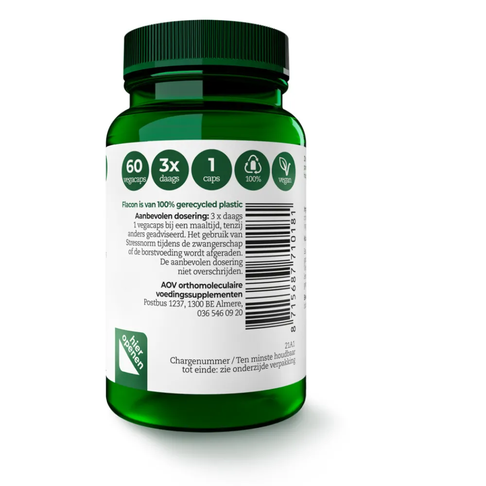 Dosering en Gebruik: 3 keer daags 1 vegacap bij een maaltijd, tenzij anders geadviseerd Aanbevolen dosering niet overschrijden. Vanwege de aanwezigheid van citroenmelisse-extract wordt gebruik tijdens de zwangerschap of de borstvoeding afgeraden.