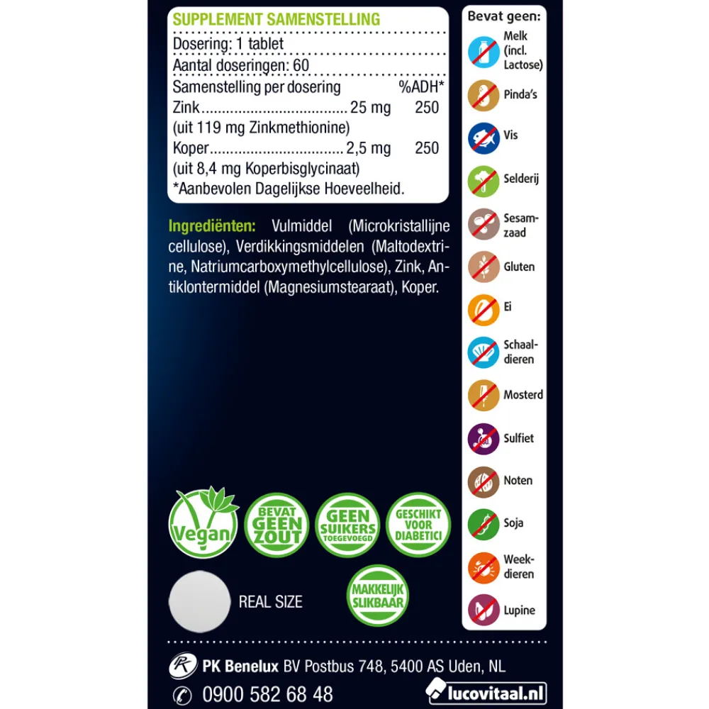 Extra informatie over Lucovitaal Zink met Methion & Koper