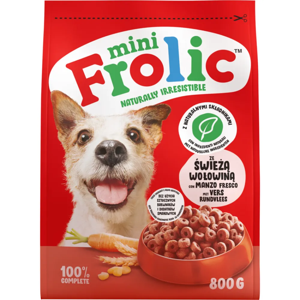 Frolic Hondenvoer Droog Mini Rund biedt malse en smakelijke brokjes speciaal ontworpen voor kleine honden. De brokjes zijn bereid met vers rundvlees en zijn onweerstaanbaar lekker, waardoor jouw hond er geen genoeg van kan krijgen. Elk brokje bevat alles wat je hond nodig heeft voor een uitgebalanceerde voeding, zonder toegevoegde smaakversterkers. De formule is boordevol vers rundvlees, groenten, granen, vitaminen en mineralen, wat zorgt voor een voeding die alle voedingsbehoeften van je hond vervult.