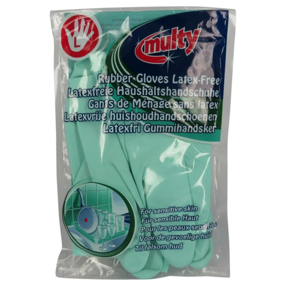 OmschrijvingMulty Huishoud Handschoen Nitril LargeLatexvrije huishoudhandschoenen met katoenen vlokvoering voor de gevoe…