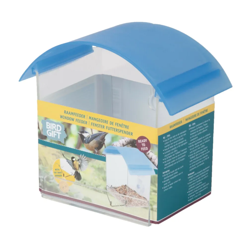 De raamfeeder is een kleine plastic feeder geschikt voor alle soorten zaadmixen voor vogels. De raamfeeder bevestig je met 2 sterke zuignappen aan je raam. Het stelt je in staat om van dichtbij vogels te bekijken. De feeder is inclusief vetbolhouder.