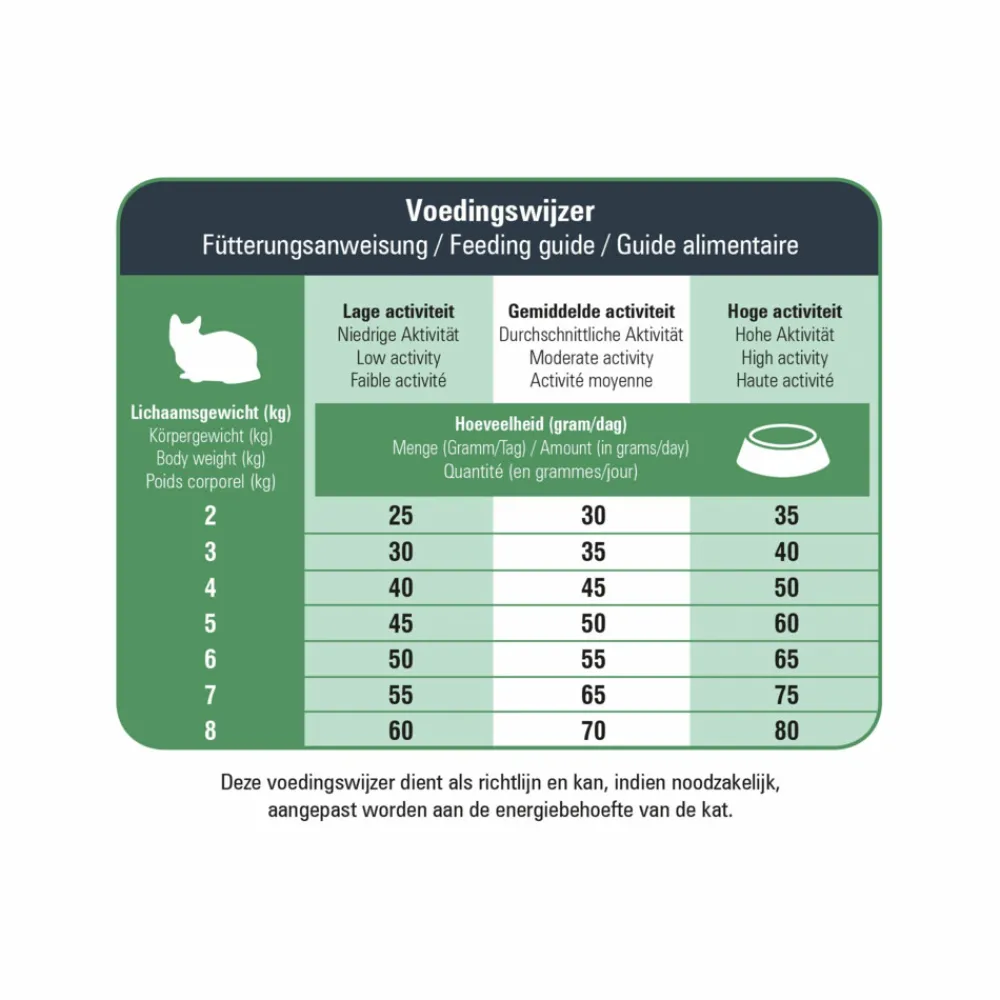 Wil je jouw kat eens extra verwennen, geef dan een natvoeding uit het Prins NatureCare assortiment. Dit zijn gezonde en natuurlijke vleesmaaltijden voor jouw kat. Overige bijvoeding wordt afgeraden. Meng gedurende minimaal 7 dagen steeds meer nieuwe voeding door de oude voeding tot je geheel bent overgestapt.
