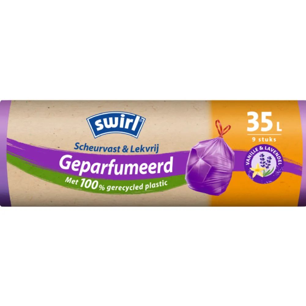 Swirl Pedaalemmerzakken Geparfumeerd Vanille & Lavendel met Trekband 35 liter 9 st