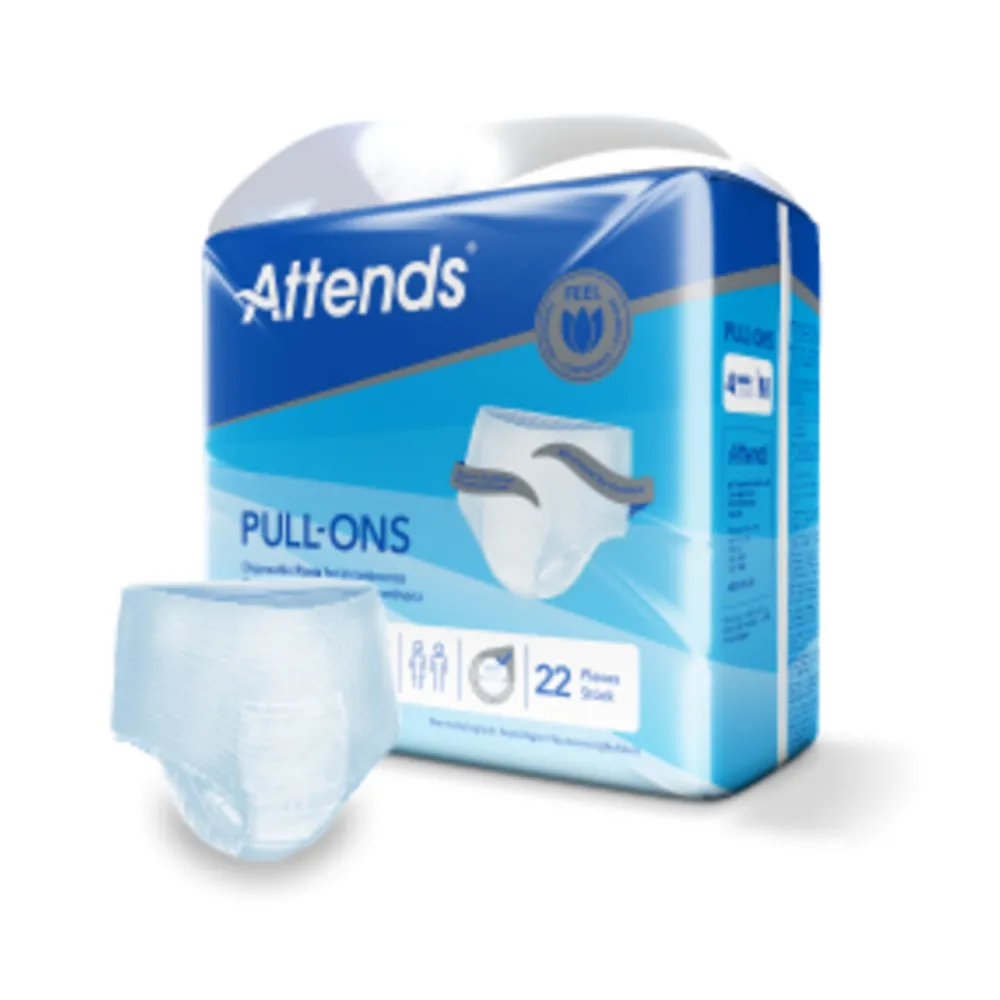 Medisch hulpmiddel Attends Pull-Ons 4M is een zacht en discreet broekje, dat u kunt dragen als normaal ondergoed. De wegwerpbroekjes kunnen gemakkelijk aan- en uitgetrokken worden en zijn ontworpen om lichte tot matige incontinentie te beheersen. Attends Pull-Ons zorgen voor een superieure pasvorm en extra comfort. De sterk absorberende kern beschermt tegen doorlekken en geurtjes. Voor een actief leven met een veilig gevoel. Attends Pull-Ons is ontworpen voor actieve mensen, die discrete en comfortabele bescherming wensen, die aanvoelt als normaal ondergoed.