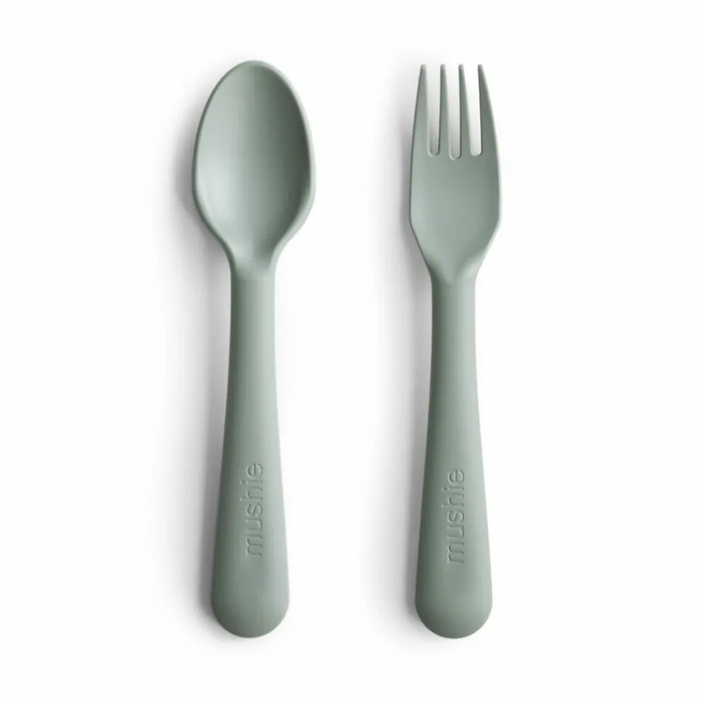 Mushie Kinderbestek Set Lepel en Vork Sage