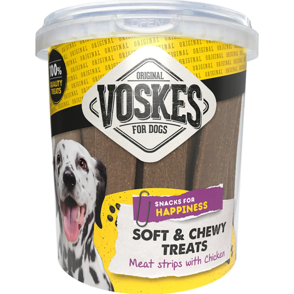Voskes Kip Vleesstrips zijn malse en smaakvolle strips van kip, perfect als een gezond en natuurlijk tussendoortje voor je hond. Deze snack is niet alleen heerlijk, maar ook voedzaam, en ideaal voor honden van alle rassen. De vleesstrips kunnen gemakkelijk in stukjes worden gebroken, waardoor ze ook uitstekend als beloningssnack tijdens de training te gebruiken zijn. Dankzij de hoge kwaliteit en de natuurlijke ingrediënten is dit een traktatie waar je hond van zal genieten, terwijl het bijdraagt aan een verantwoorde voeding.