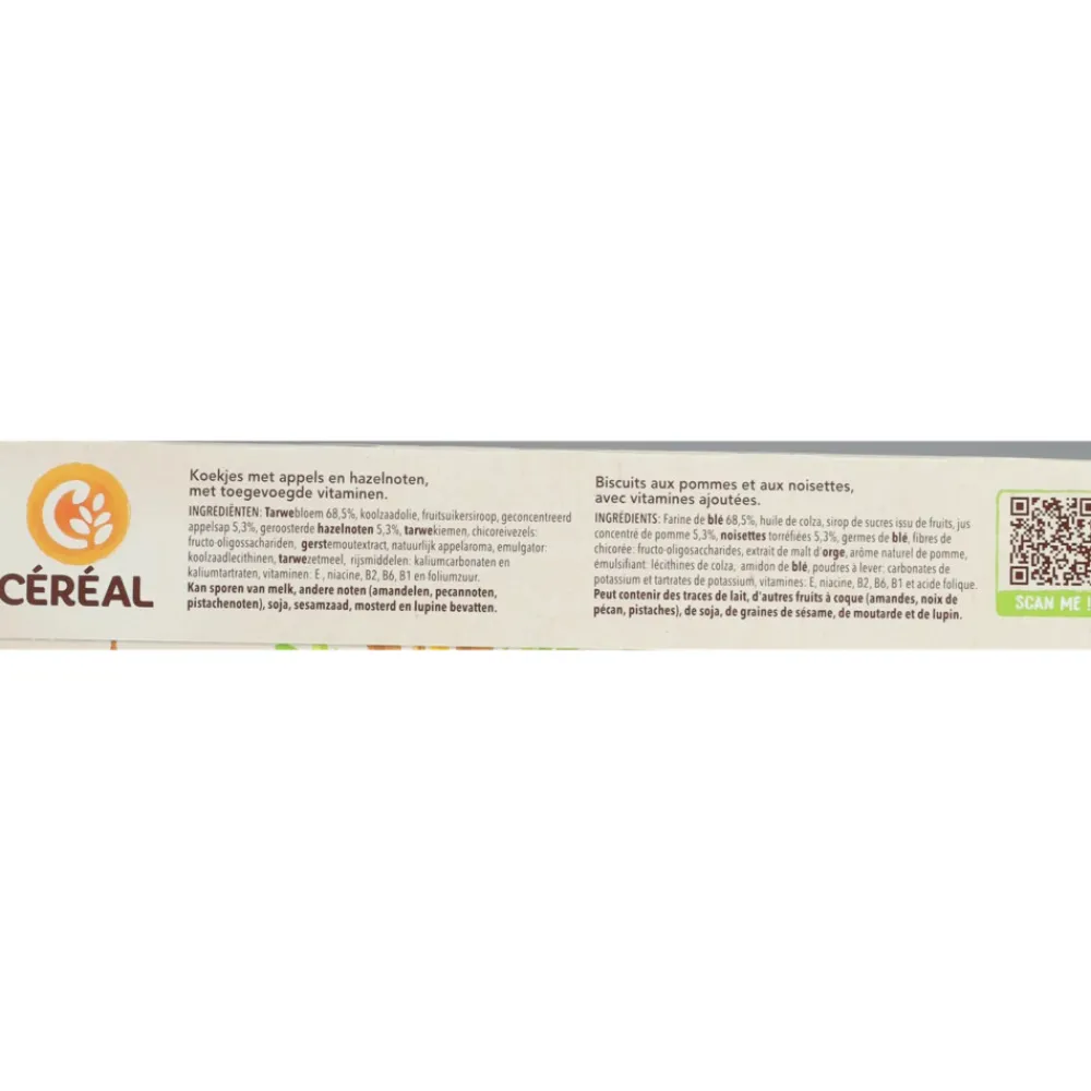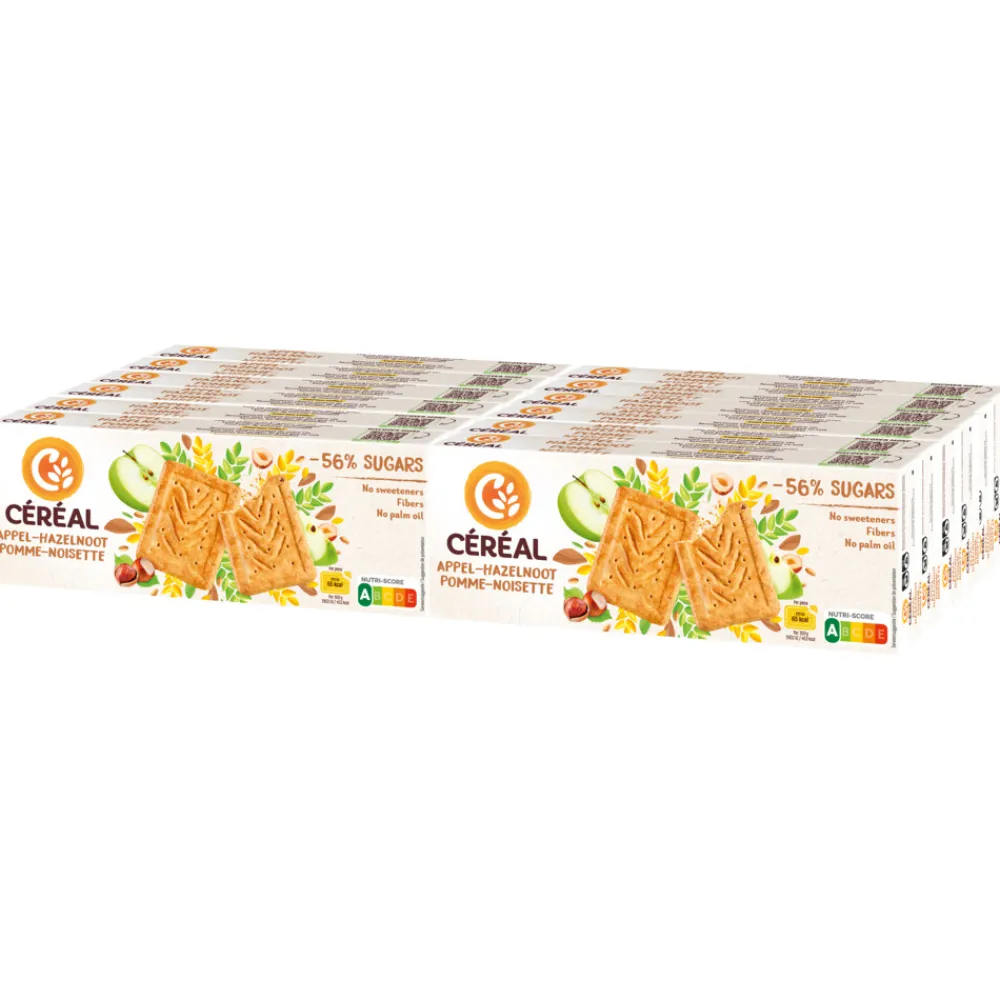 Céréal Koekjes Appel-Hazelnoot zijn koekjes met appels en hazelnoten, met toegevoegde vitaminen.