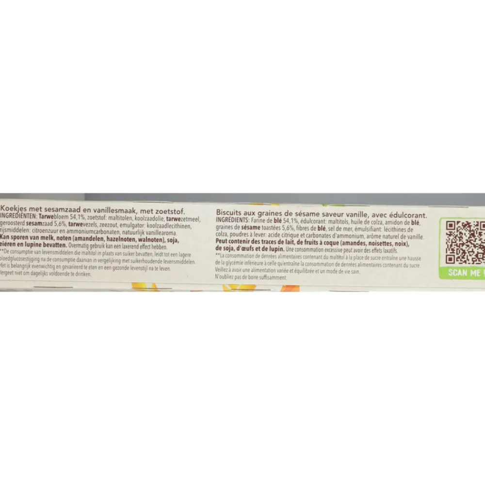 Ontdek de heerlijke smaakcombinatie van sesam en vanille met de Koekjes Sesam met Vanillesmaak van Céréal. De koekjes zijn suikervrij, heerlijk voor bij de koffie en thee.