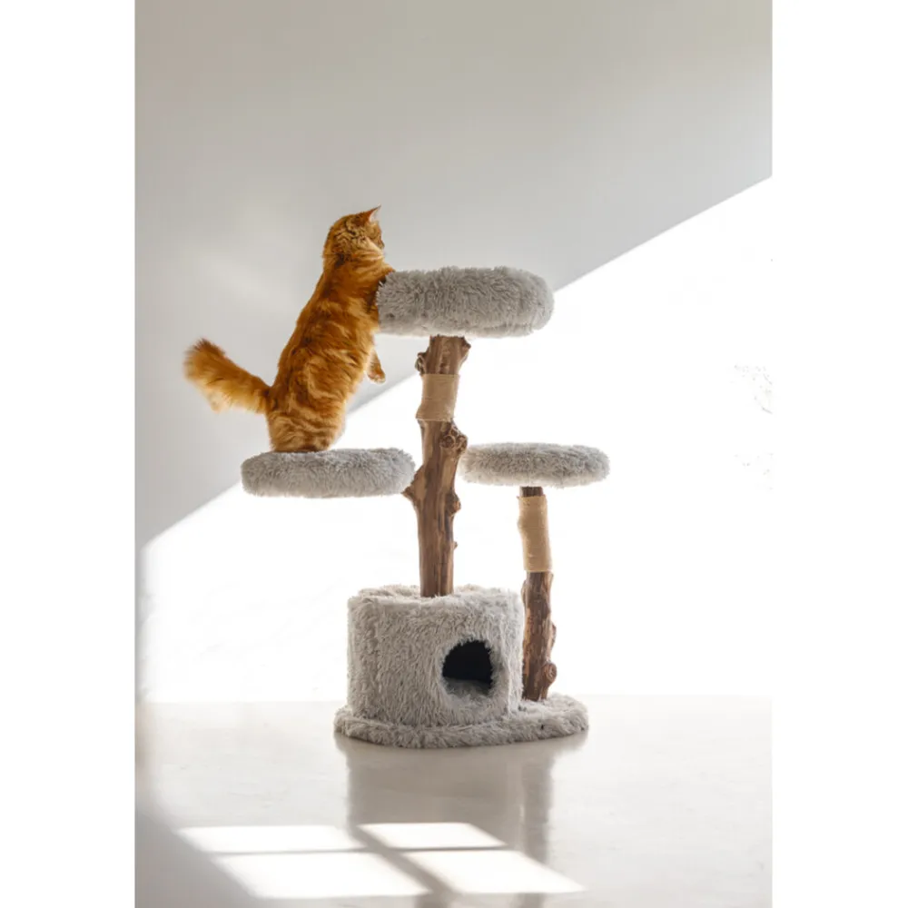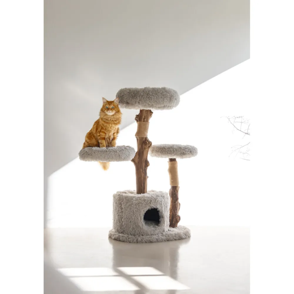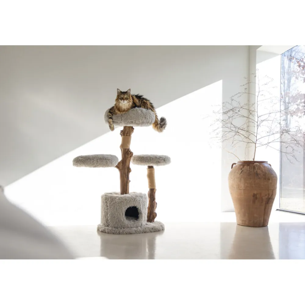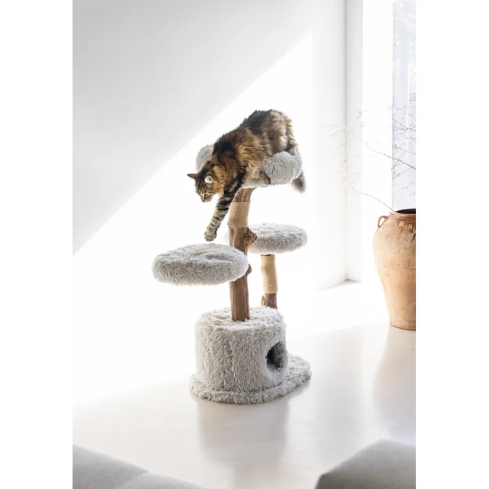 Een kat heeft meerdere krabplekken nodig in huis, daar kan de Designed by Lotte Ziza is er een van zijn. Deze stijlvolle krabpaal is gemaakt van natuurlijk hout en afgewerkt met een zachte pluche stof. De vier ligplekken zijn goed gevuld, zodat het lekker zacht ligt voor de kat. De hoezen kunnen er bovendien af worden gehaald en zijn uitwasbaar in de wasmachine op 30 graden. Onder de bodemplaat van de krabpalen zitten dopjes, zodat de krabpaal minder gemakkelijk kan verschuiven. De krabpaal is gemaakt in een mooie grijze kleur, die past in ieder interieur! Doordat de krabpalen zijn gemaakt van natuurlijk hout, is iedere krabboom uniek. Hierdoor kan de paal iets afwijken van de afbeelding.