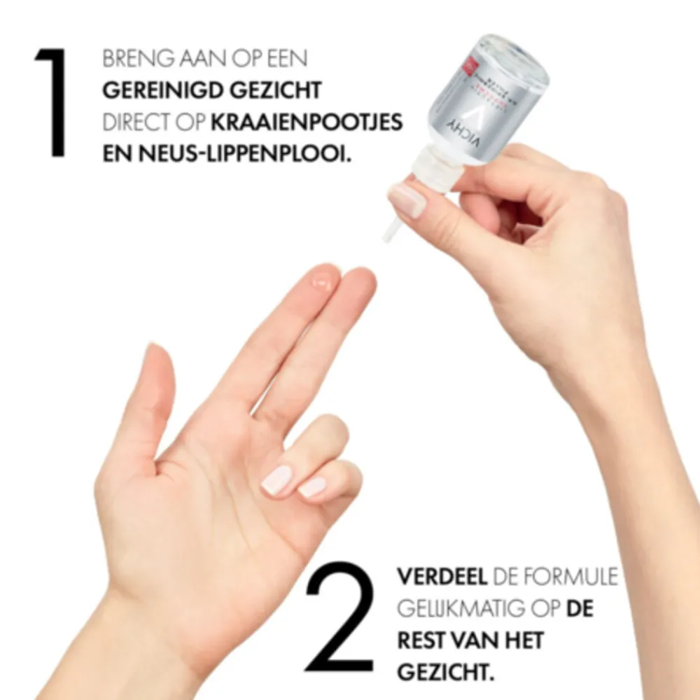 Breng ’s ochtends en/of ’s avonds een kleine hoeveelheid serum aan op een schoon gezicht en de hals. Masseer zachtjes in met opwaartse bewegingen tot volledige absorptie.
