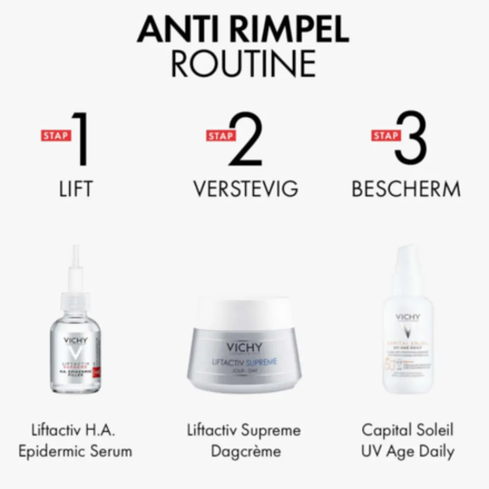 Vichy Liftactiv Supreme H.A. Epidermic Filler Serum is een geavanceerd anti-aging serum dat is ontworpen om de tekenen van huidveroudering aan te pakken. Met krachtige ingrediënten, waaronder hyaluronzuur, werkt dit serum om de huid te hydrateren, te verstevigen en fijne lijntjes en rimpels te verminderen.