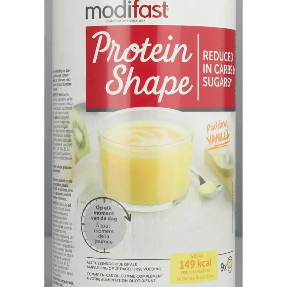 Modifast Protein Shape Pudding Vanille is een poeder ter bereiding van pudding, met chocoladesmaak. De pudding is rijk aan eiwitten en is verrijkt met vitaminen en mineralen.