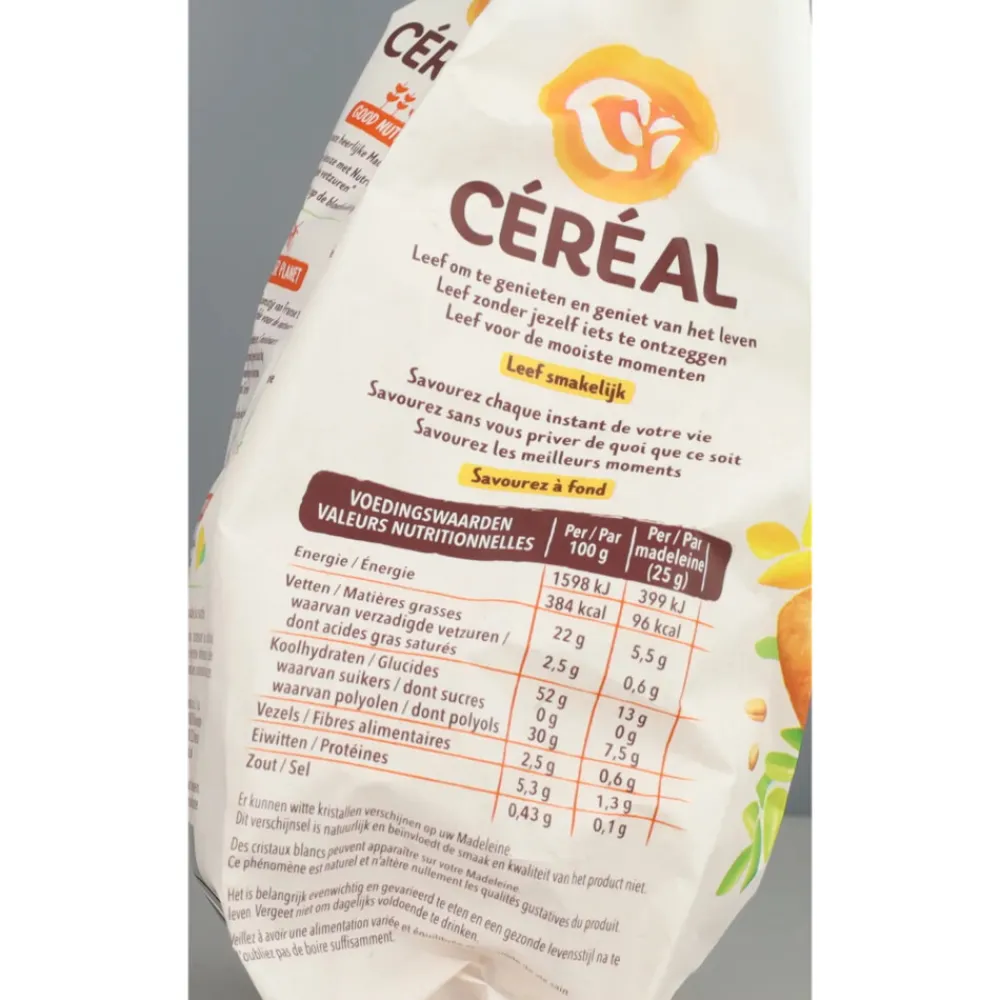 Céréal Madeleines heeft een zachte textuur en bevat een vleugje vanille. Proef de rijke smaak zonder suikers en 74% minder verzadigde vetzuren*. Jouw perfecte traktatie voor elk moment. Ideaal als lekker tussendoortje en handig verpakt om mee te nemen.