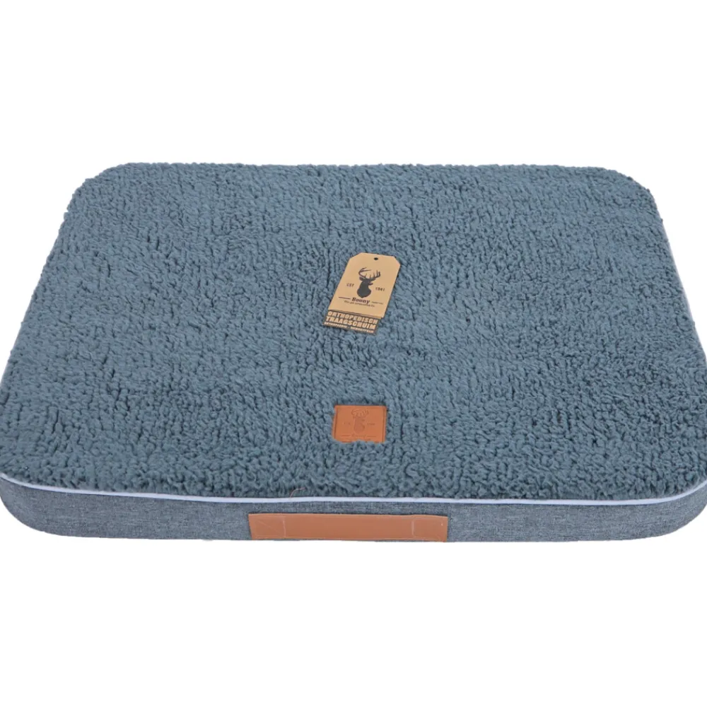 Boony ‘EST 1941’ orthopedisch traagschuim kussen voor optimale ondersteuning van spieren en gewrichten. De combinatie van koud- en traagschuim draagt bij aan een orthopedisch verantwoorde (nacht)rust. Door zijn eigen lichaamsgewicht zakt je hond licht weg in de traagschuim toplaag. Drukpunten worden geneutraliseerd waardoor een orthopedisch correcte uitlijning van de wervelkolom ontstaat. De kleinste drie maten orthopedische ligkussens passen bovendien ook in het rotan bed van Boony ‘Est 1941’.