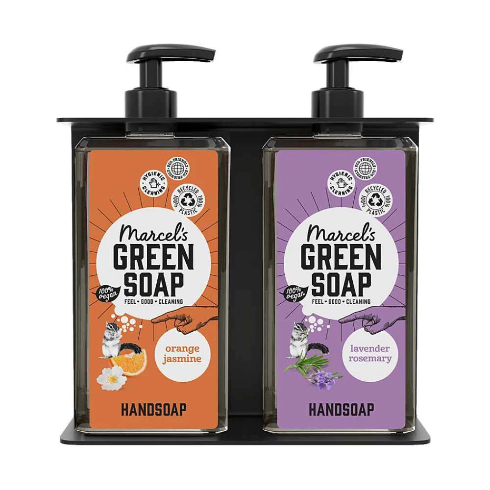 Het is en blijft een uitdaging: waar laat je die flessen zeep in de douche of het toilet? Ze belanden vaak ergens op de grond, de wasbak, of naast het raam. Gelukkig heeft Marcel dé oplossing: een plasticvrije zeephouder die je op een handig plekje in de douche of op het toilet kunt ophangen. Zo heb je jouw showergel, shampoo en handzeep altijd bij de hand. Wil je die handige zeephouder ook in de keuken hangen? Geen probleem! Marcel’s ecologische afwasmiddel past er ook in.