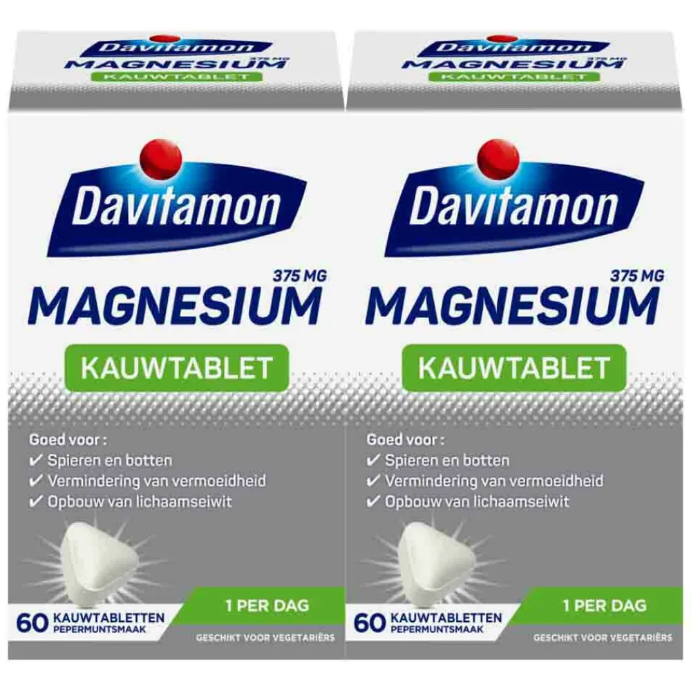 Davitamon Magnesium Kauwtablet bevatten wel 375mg magnesiumoxide per kauwtablet. Magnesium ondersteunt het behoud van soepele spieren en sterke botten, bevordert het de energiestofwisseling en helpt het dus bij futloosheid en vermoeidheid. Daarnaast zorgt magnesium voor het goed functioneren van het zenuwstelsel, concentratievermogen en de opbouw van lichaamseiwit. Magnesium helpt bij het vrijmaken van energie uit voeding.