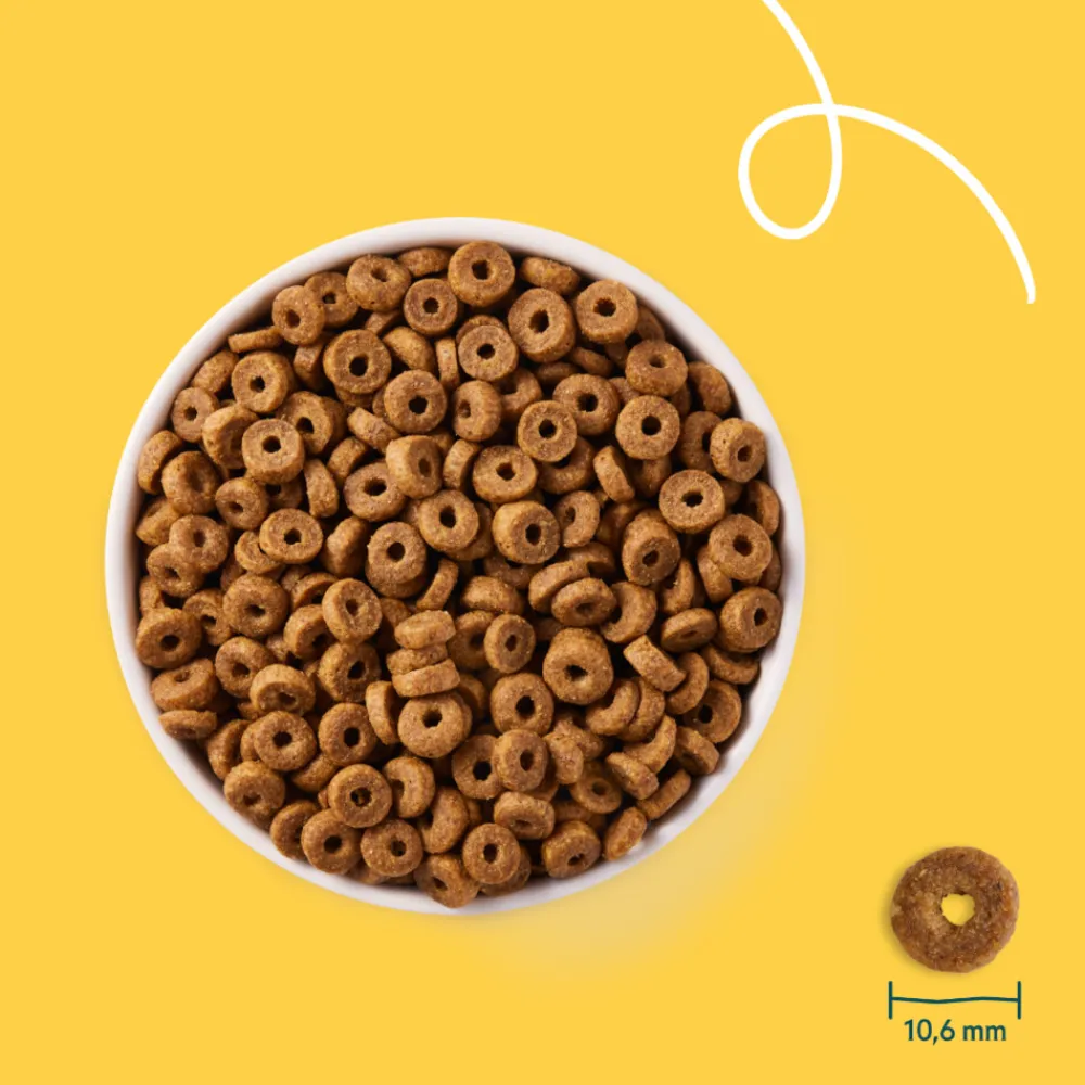Gedroogde kip* (19,5%), tarwe*,mais*, kippenvet*, rijsteiwit*, gele erwten*, sojabonen*, gedroogde MSC haring¹ (4,3%), groene erwten*, lupine*, sojaschilfers*, biergist, mineralen, zonnebloempitschilfers*.