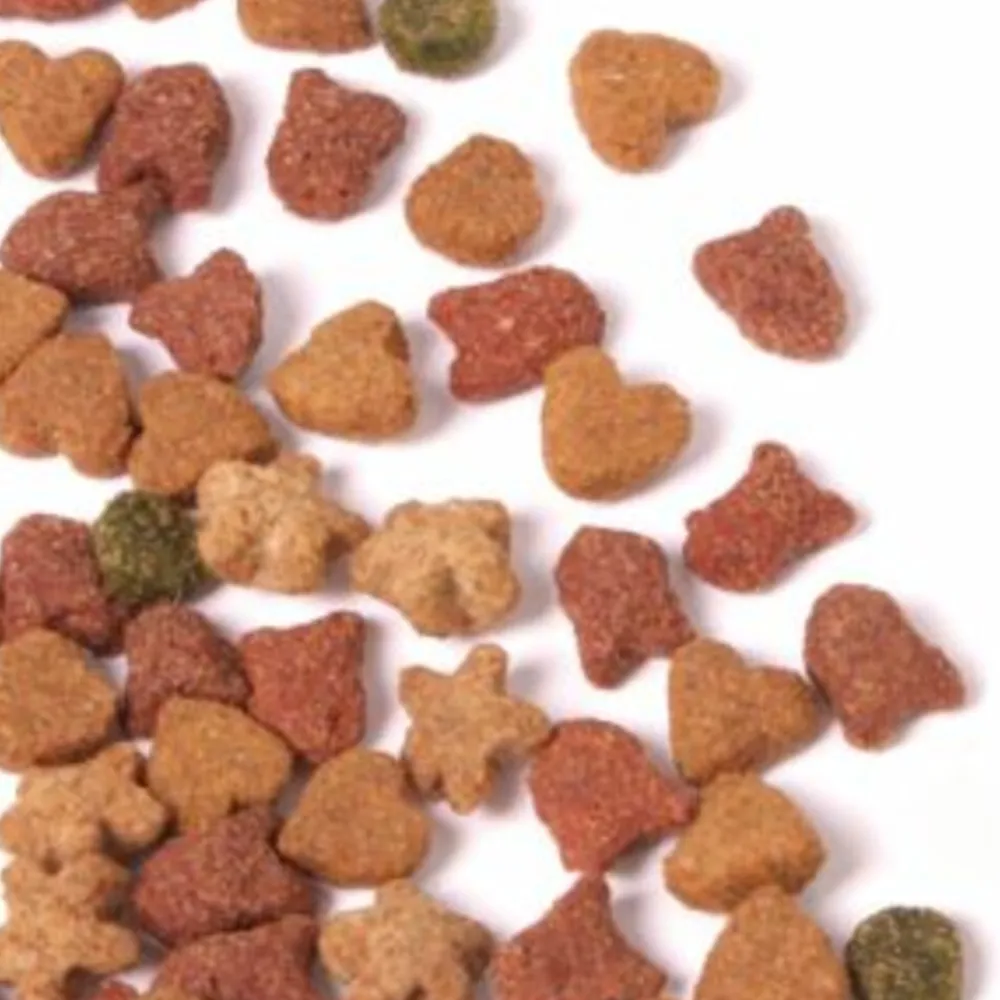 Granen, vlees en dierlijke bijproducten (4% rund, 4% gevogelte in de hartvormige brokjes), plantaardige bijproducten (2% cellulose in de 5 ster brokjes), Oliën en vetten, vis en visbijproducten (4% ansjovis en 4% zalm in de rode visbrokjes, 4% tonijn in de donkere visbrokjes), mineralen, gist en groenten (4% groenten in de groene brokjes).