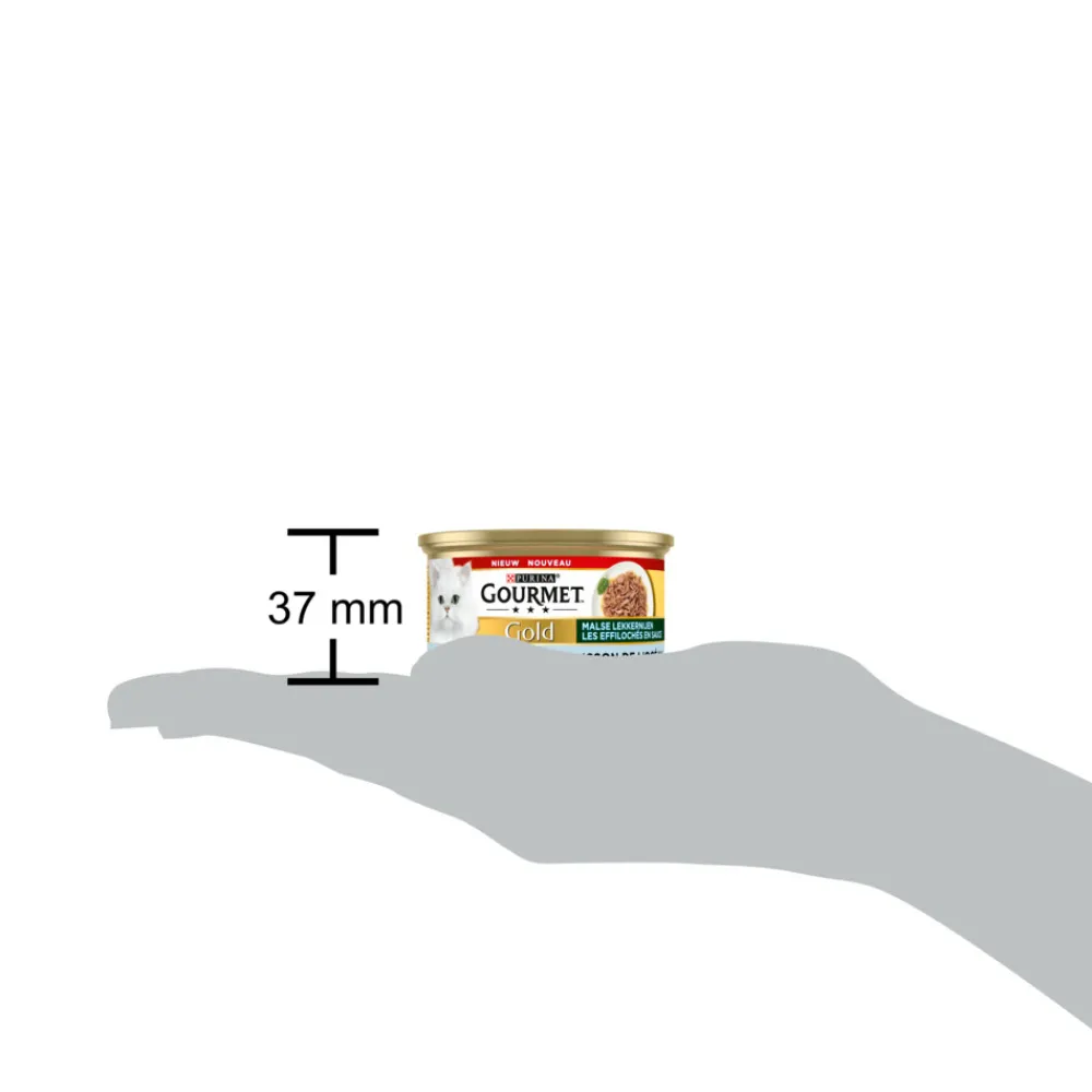 Purina Gourmet Gold Blik Malse Lekkernijen Zeevis, een heerlijke reeks gemaakt met kwalitatief hoogwaardige ingrediënten waar jouw kat zeker van zal genieten.