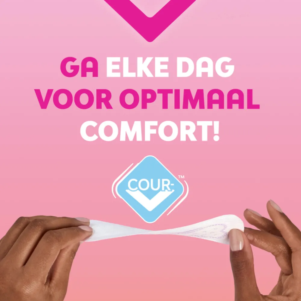 Libresse Regular inlegkruisjes bieden jou dagelijks comfort en bescherming. Ze zijn zacht voor je huid en volgen dankzij CurveFit-technologie moeiteloos de vorm van je lichaam. Zo blijven ze goed op hun plek zitten en voel je je zeker in elke situatie. Het ademende materiaal laat lucht en warmte door, waardoor je huid op een natuurlijke manier blijft ademen. Ideaal voor dagelijks gebruik en geschikt voor de gevoelige huid, want ze zijn ongeparfumeerd en dermatologisch getest. Zo voel jij je fris en comfortabel, elke dag opnieuw.