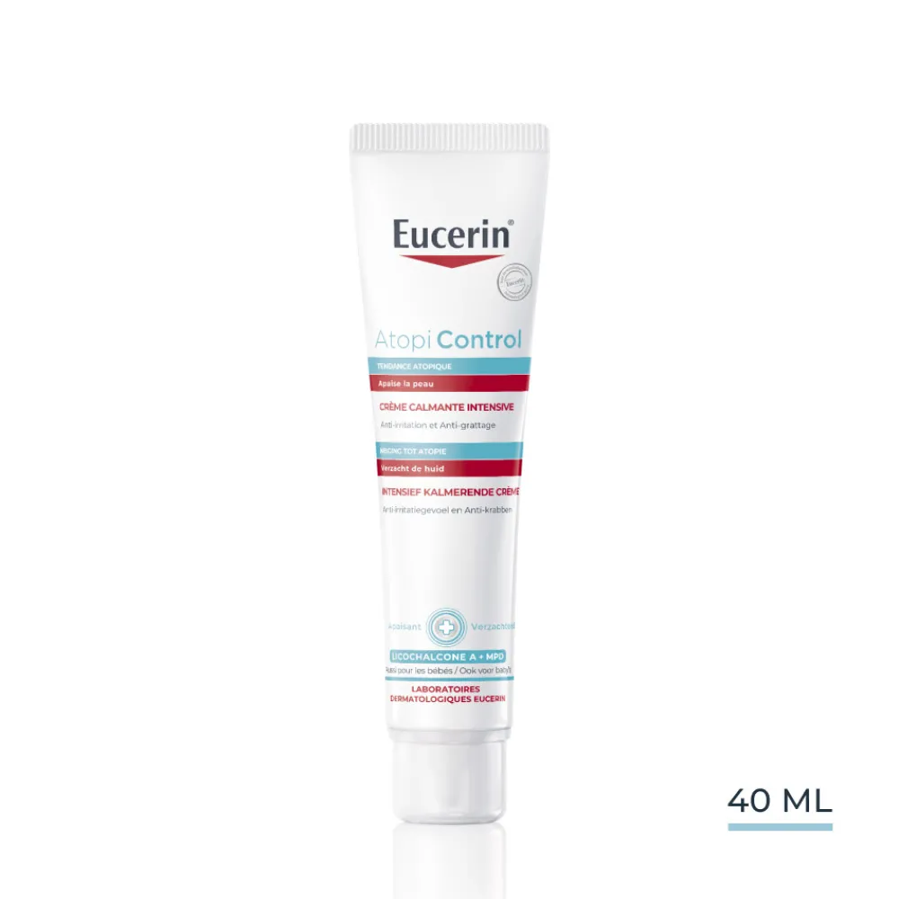 Eucerin AtopiControl Acute Care Creamdoorbreekt de vicieuze cirkel van huid irritatie met kalmerende verzorging bij flare-ups (vlammende roodheid). De Creme bevat combinatie van omgea 6-vetzuren, en verzachtende Licochalcone A voor het voeden van de huid. De Atopicontrol crème is geschikt voor atopische huid bij volwassenen, kinderen en baby’s ouder dan 3 maanden.Om het risico van huidirritatie en allergieën zo klein mogelijk te maken, bevat het geen cortison, parfums, kleurstoffen en parabenen.