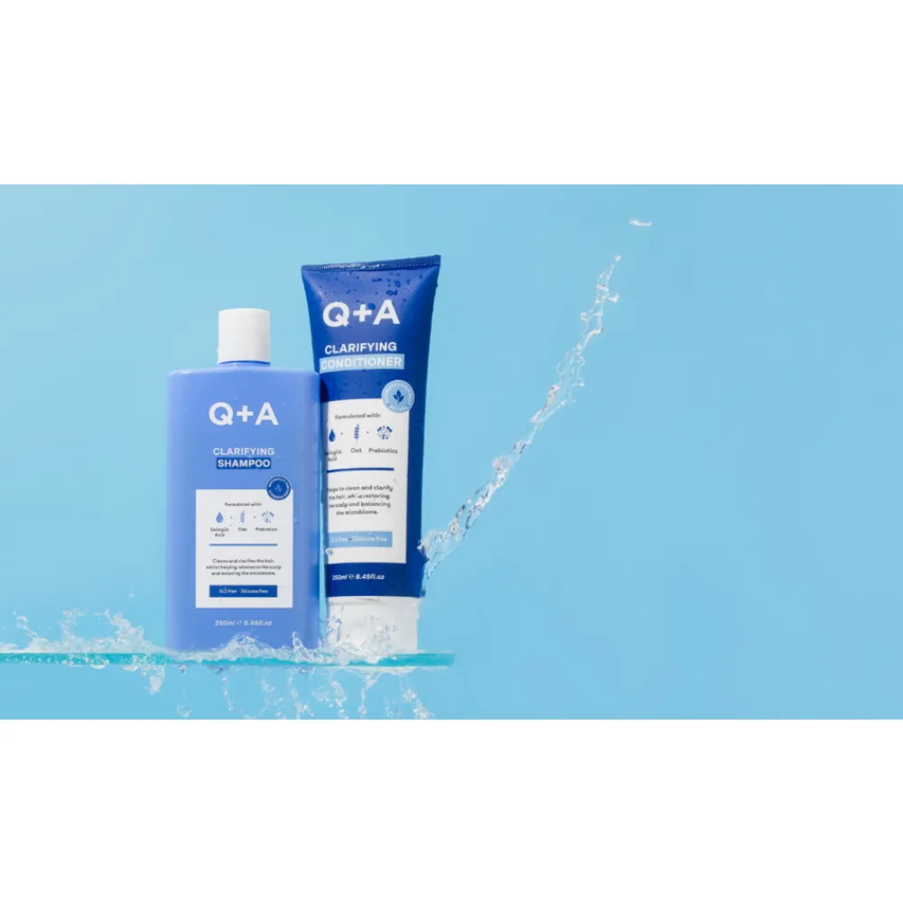 Geef je haar en hoofdhuid een verfrissende reset met de Q+A Clarifying Conditioner. Deze zuiverende conditioner verwijdert op milde wijze productophopingen, terwijl hij de natuurlijke balans van je hoofdhuid herstelt. Dankzij een krachtige mix van salicylzuur, haver en prebiotische ingrediënten wordt je haar niet alleen schoon, maar ook gevoed en gekalmeerd. Milde reiniging & diepe verzorging Deze conditioner is perfect voor wie op zoek is naar een evenwicht tussen reiniging en verzorging. De formule zuivert zonder je haar te strippen van essentiële voedingsstoffen, waardoor je lokken fris en gezond aanvoelen.