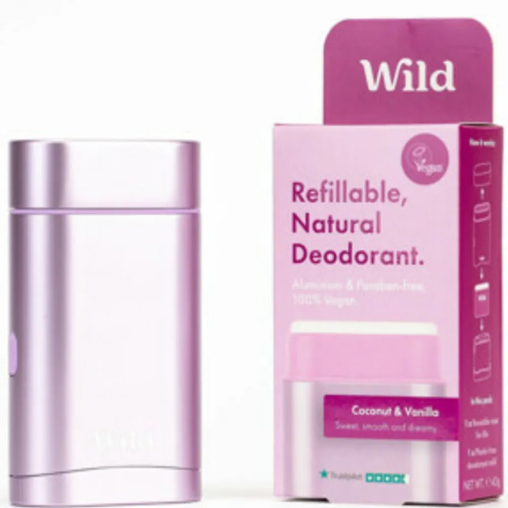Met het Wild Purple Deodorant Starterspakket – Kokos & Vanille werk je mee aan de missie van Wild om de wegwerpcultuur van alledaagse badkamerproducten te veranderen. De gestroomlijnde en stijlvol ogende deodorantapplicators zijn herbruikbaar en gemaakt van duurzaam aluminium en gerecycled plastic. De zero-plastic deodorant navulling is natuurlijk en composteerbaar.