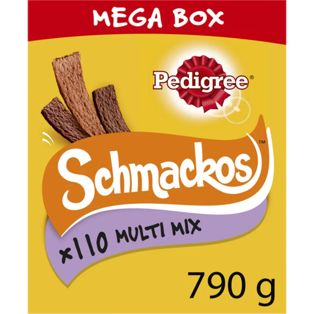 Ultieme verwenbox voor je hond! Met maar liefst 110 Schmackos leg jij je hond de komende tijd helemaal in de watten. Pedigree Schmackos zijn malse en lekkere tussendoortjes, boordevol smaken waar honden dol op zijn. Verkrijgbaar in rund-, lam- en gevogeltesmaak.