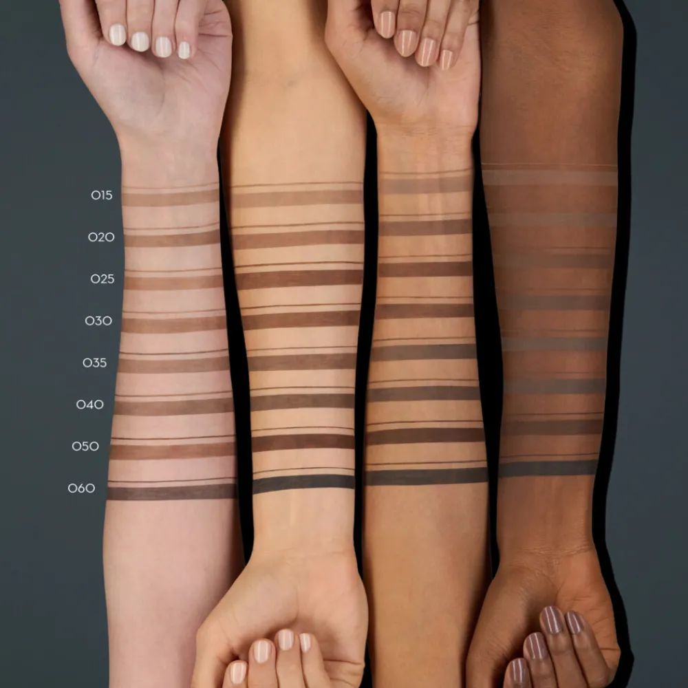 Ingredients: Dimethicone, hydrogenated microcrystallline ceramic (Hydrogenated microcrystalline wax), synthetic beeswax, trimethyl silicate, helianthus annuus (sunflower) seed wax, polybutene, neopentyl glycol. DIHEPTANOOO. ATE, ISODODECANE, SHOREA ROBUSTA RESIN, RHUS VERNICIFLUA PEEL CERA (RHUS VERNICIFLUA PEEL WAX), TOCOPHEROL, HELIANTHUS ANNUUS (SUNFLOWER) SEED OIL, TALC, PENTAERYTHRITYL TETRAISOSTEARATE, CI 77288. (CHROMIUM OXIDE GREENS), CI 77491 (IRON OXIDES), CI 77492 (IRON OXIDES), CI 77499 (IRON OXIDES), CI 7742 (MANGANESE VIOLET), CI 77891 (TITANIUM DIOXIDE).