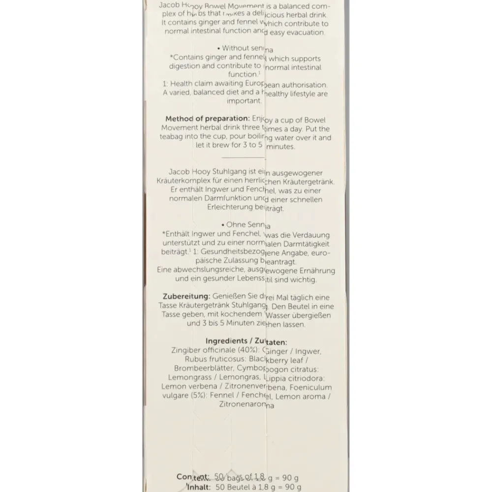 Jacob Hooy Stoelgang is een uitgebalanceerd kruidencomplex voor een heerlijke kruidendrank. Het bevat gember en venkel die bijdragen aan een normale darmfunctie en een vlotte ontlasting*.