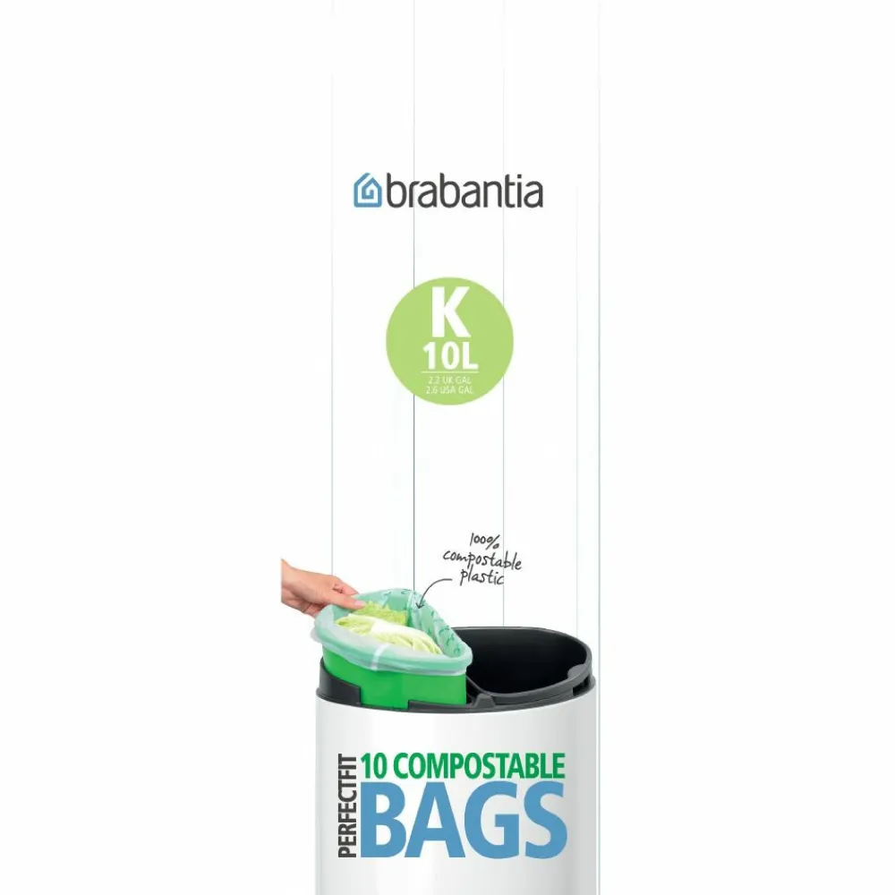 Geschikt voor de Brabantia Twin Bin prullenbakken met Bio-Bak. Inhoud is 10 liter. Een rol bevat 10 afvalzakken. De praktische vuilniszakken zijn daarnaast ook type K.