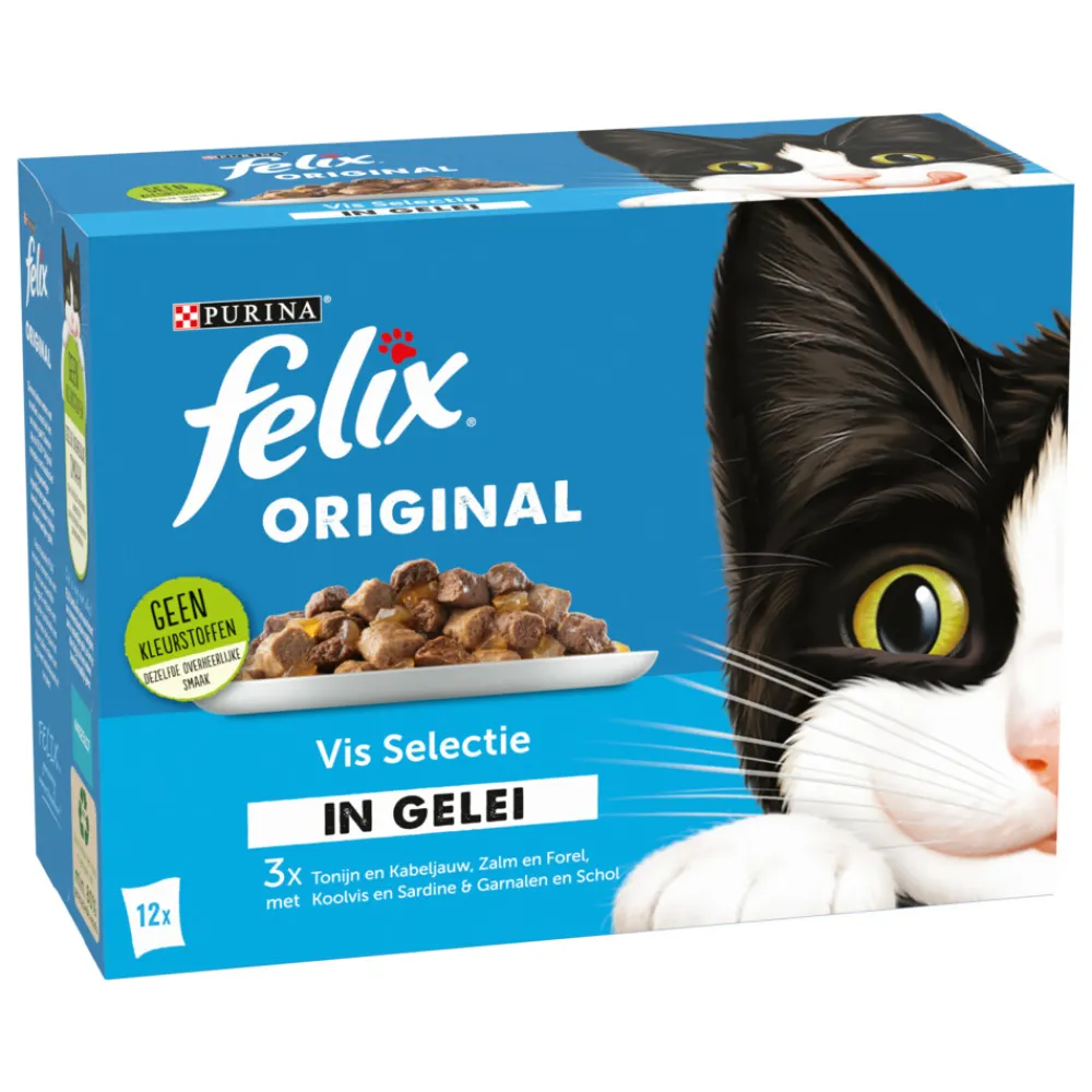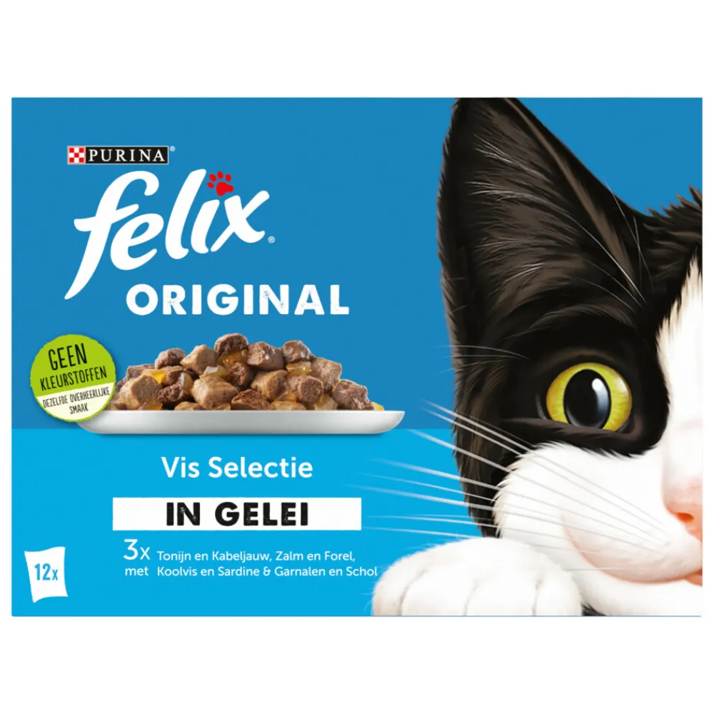 Slimme katten weten wat ze willen, vooral als het om eten gaat! Daarom zijn de Felix Original recepten met kwalitatief hoogwaardige ingrediënten gemaakt en bereid met malse stukjes in een heerlijke gelei. Deze Original Felix recepten vormen ook een bron van essentiële Omega 6-vetzuren met de juiste combinatie van vitaminen en mineralen die jouw kat klaar zullen maken om nog meer kattenkwaad uit te halen.