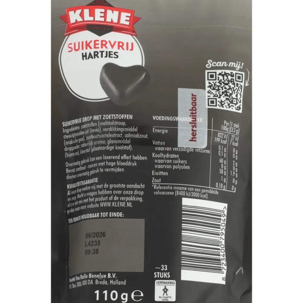 Suikervrije Zoethouten Hartjes zijn dropjes bereid volgens authentiek recept met echte Arabische gom. Klene maakt al sinds 1876 drop met passie en met de allerbeste ingrediënten. Klene Zoethout Hartjes Suikervrij is gezoet met zoetstoffen uit stevia.