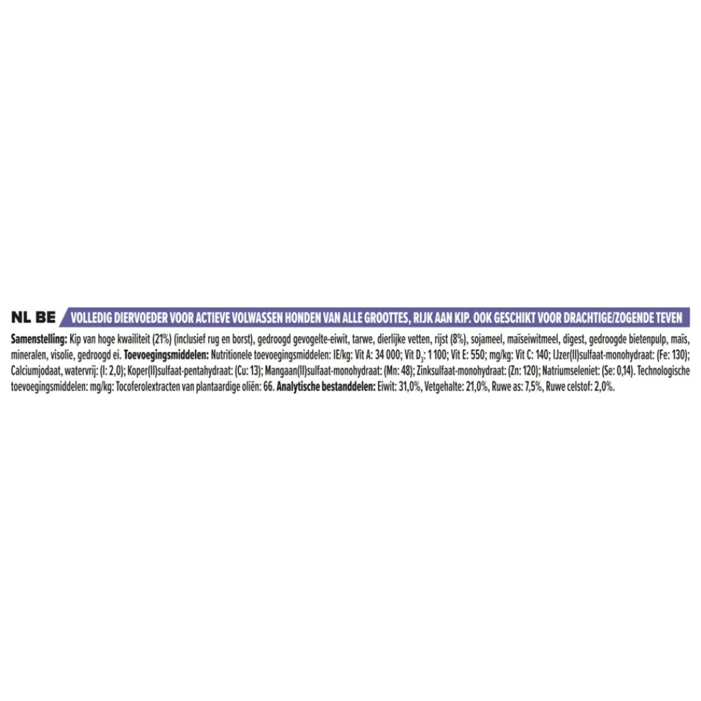 Complete voeding voor actieve volwassen honden van alle rassen. Ook geschikt voor drachtige of zogende teven. (voorheen OptiPower)