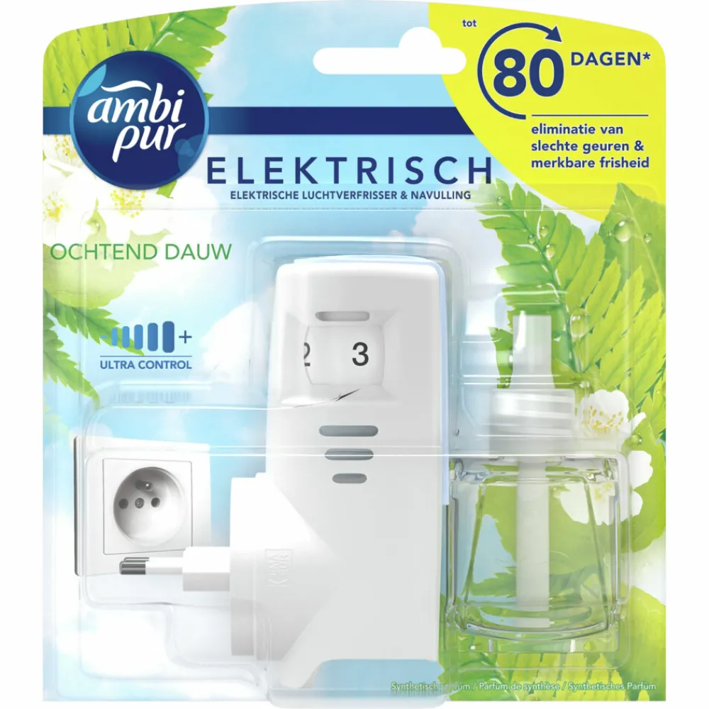 De geur Ochtend Dauw is geïnspireerd op de frisheid van een koele ochtendwandeling, met ochtenddauw die de bloemen en het gras verfrist, terwijl een revitaliserend briesje je zachtjes wekt. Creëer thuis de sfeer die je wenst met de Ambi Pur plug-in luchtverfrisser verdeler; hij elimineert geurtjes en verfrist de lucht. De Ambi Pur plug-in navullingen zijn verkrijgbaar in een hele reeks kwaliteitsvolle geuren die geurtjes elimineren en de lucht verfrissen, zodat jij en je huis van een heerlijke geur en frisheid kunnen genieten.