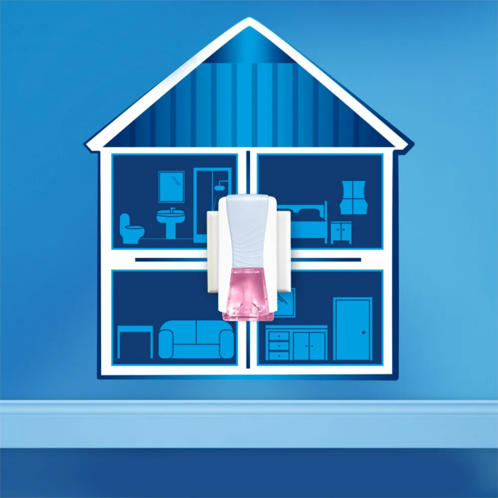 Hoe gebruik je de plug-in luchtverfrisser? Houd de navulling altijd rechtop en gebruik alleen zoals aangegeven. 1: Verwijder dop van flesje. Trek toestel uit alvorens het flesje erin te steken. Klik flesje in verdeler met logo naar voor gericht. 2: Steek in stopcontact met flesje aan de onderkant. Laat erboven 50 cm ruimte vrij. 3: Pas geursterkte aan indien nodig.