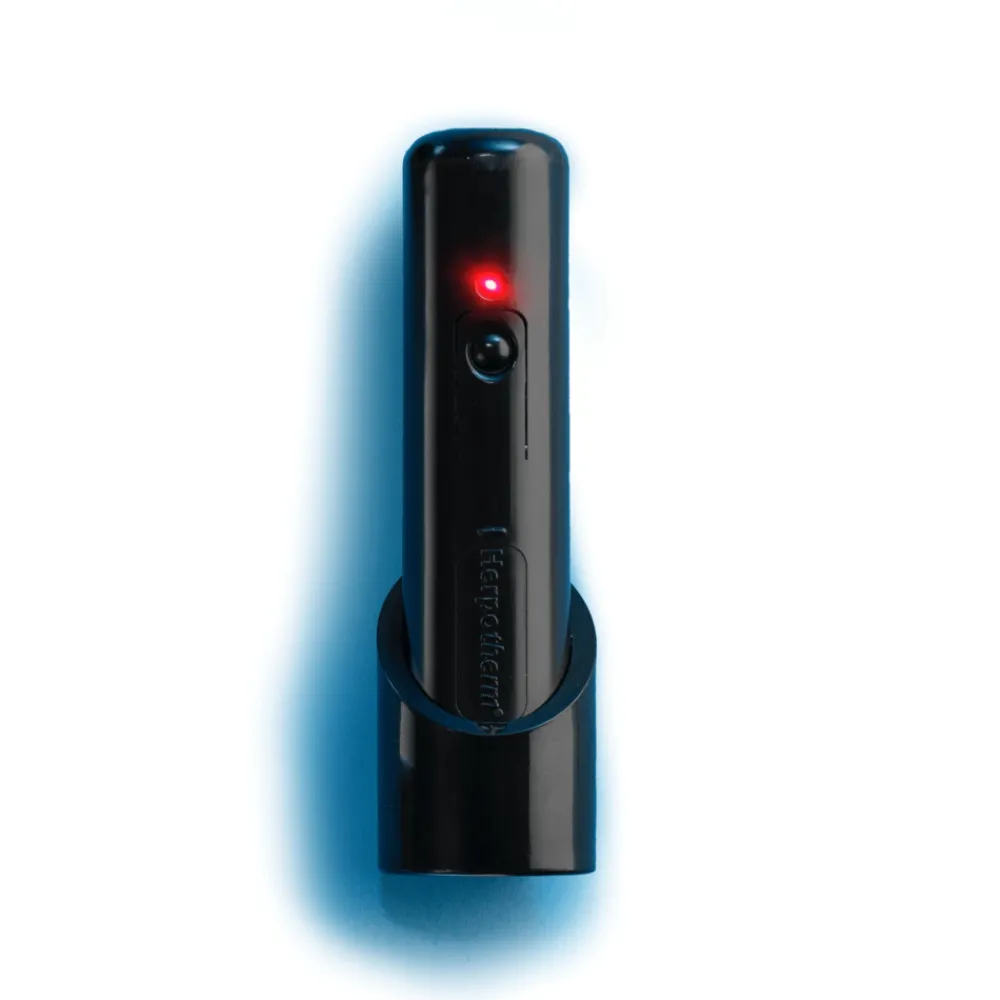 De Herpotherm Koortslip Bestrijder maakt gebruik van geconcentreerde warmte om de koortslip te bestrijden. De hitte van de keramische plaat geeft de koortslip geen kans om tevoorschijn te komen. Als je Herpotherm Koortslip Bestrijder gelijk bij de eerste symptomen, zoals een brandend gevoel en tintelingen, gebruikt kun je zo een koortslip voorkomen. Uiteraard kun je Herpotherm Koortslip Bestrijder ook te gebruiken als de blaasjes wel al zijn ontstaan. Je verkort met deze behandelpen de genezing tot ongeveer de helft van de tijd. De handige behandelpen is klein en compact en daarom makkelijk mee te nemen. De batterijen zijn te vervangen zodat de Herpotherm heel lang meegaat.
